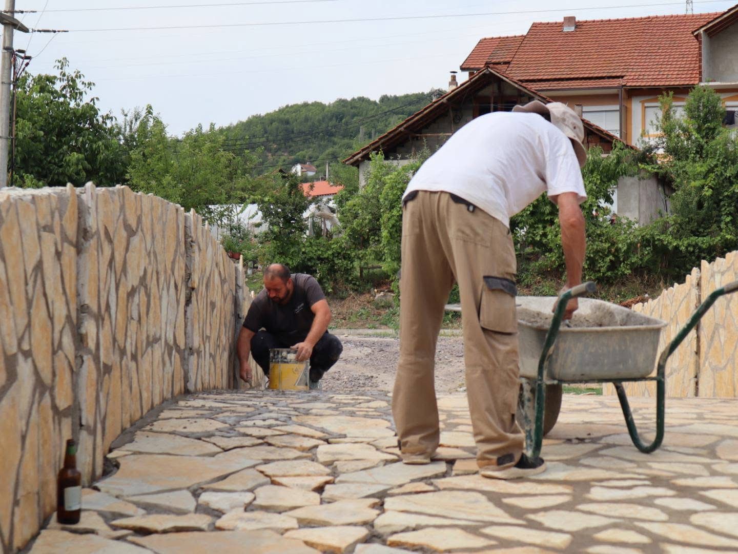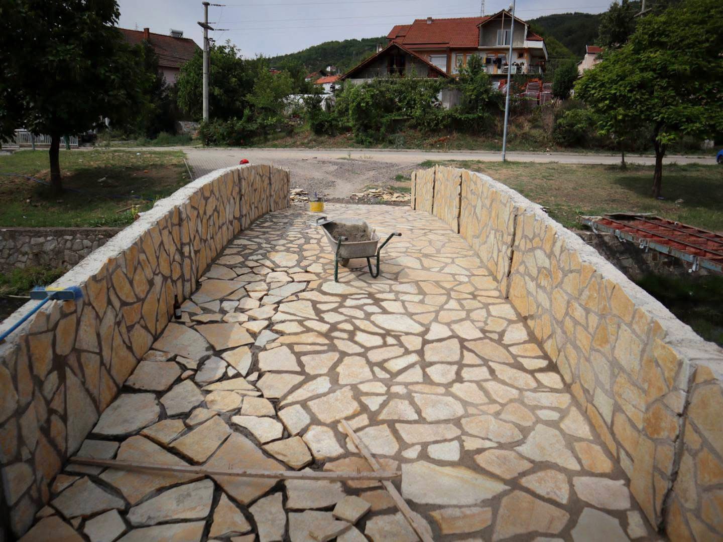 Во моментов се врши поставување на украсен камен за мостот да добие идентичен изглед со останатите пешачки мостови и патеки на Градскиот кеј на Каменичка Река.
