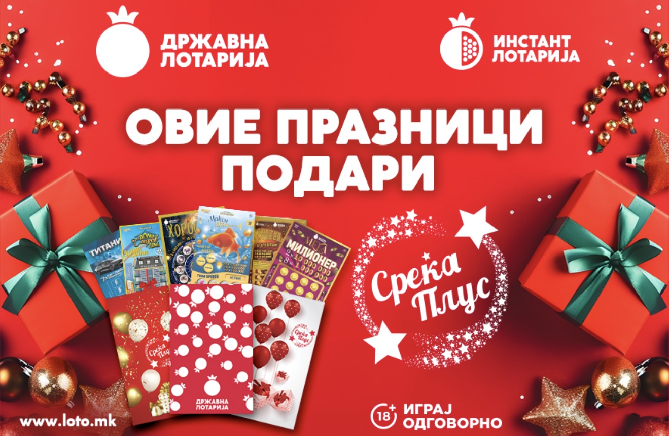 Во еден коверт „Среќа плус“ се кријат можности за исполнување на многу новогодишни желби – сопствен стан, автомобил, мотор и големи парични добивки. Инстант лотаријата ја дополнува магијата на празниците, носејќи ја шансата соништата да се претворат во реалност.